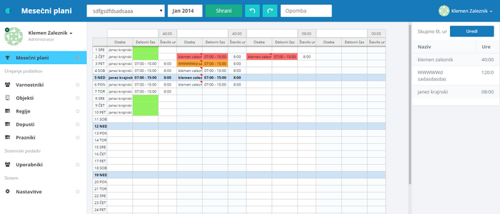 Application developed in CodeIgniter web framework for monthly managing security guards.
